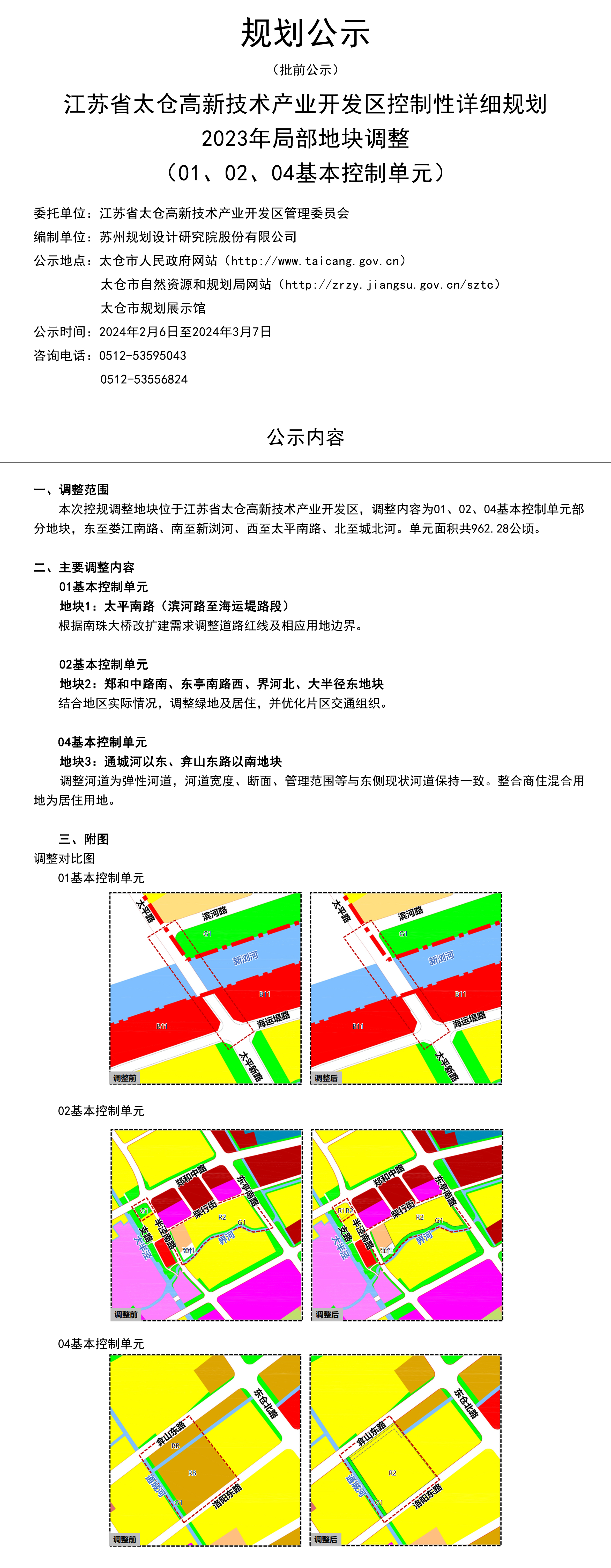 江蘇省太倉(cāng)高新區(qū)技術(shù)產(chǎn)業(yè)開(kāi)發(fā)區(qū)控制性詳細(xì)規(guī)劃2023年局部地塊調(diào)整(01、02、04基本控制單元)批前公示