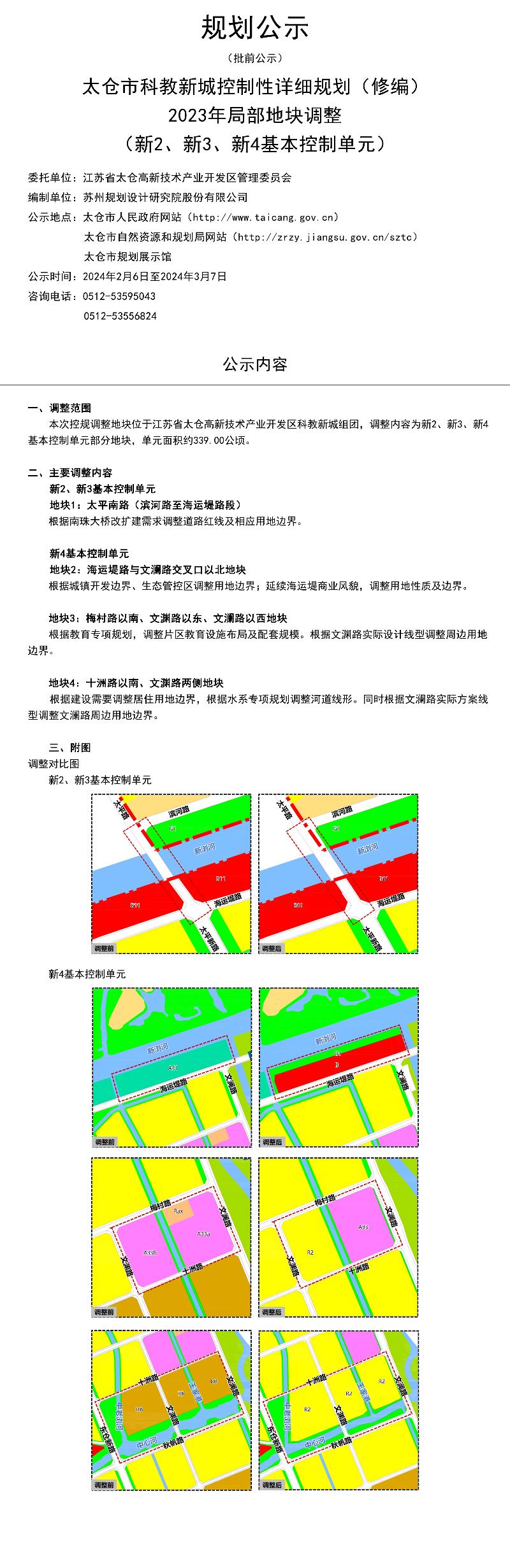 太倉市科教新城控制性詳細規劃(修編)2023年局部地塊調整(新1、新2、新4基本控制單元)批前公示