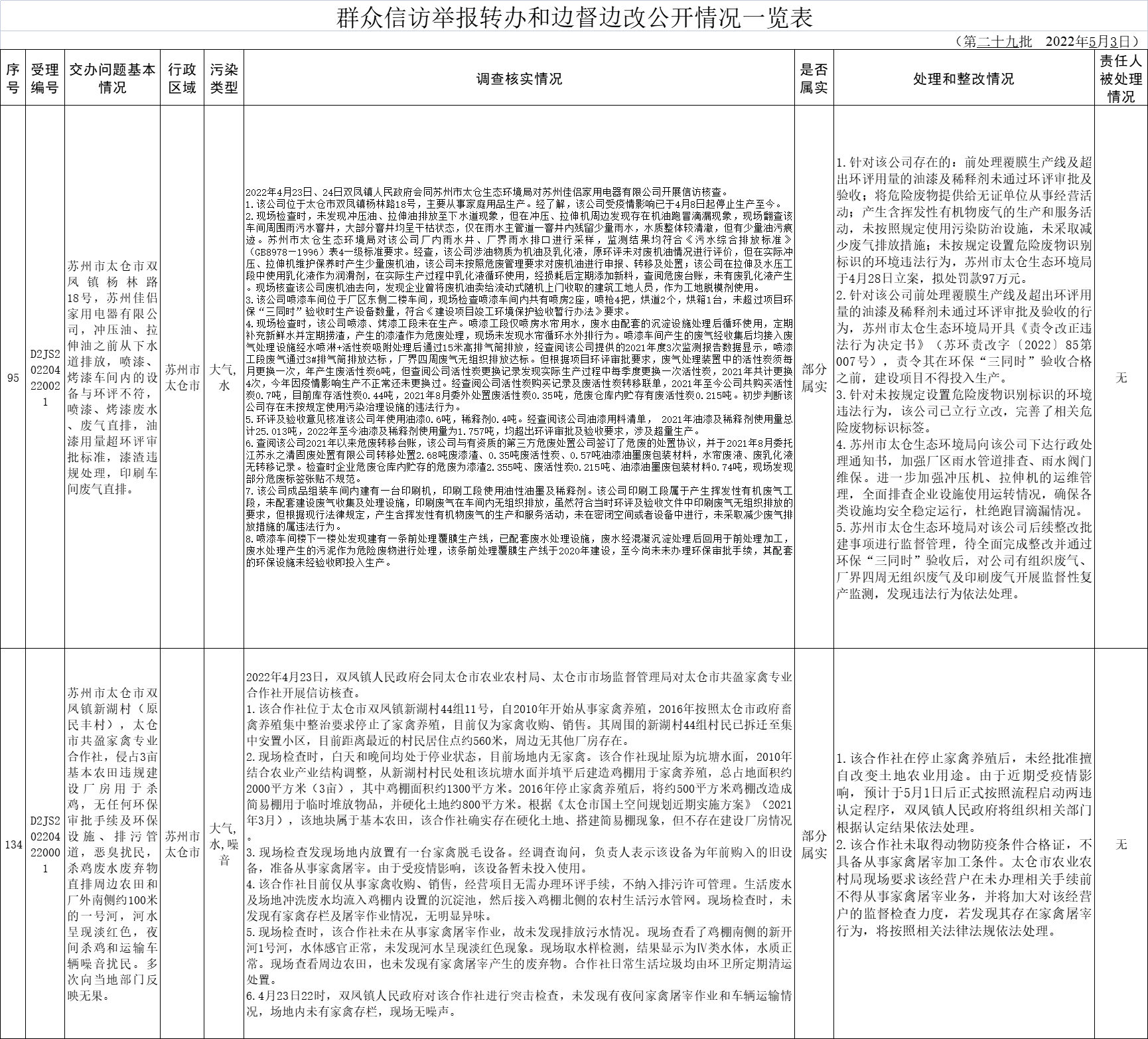 【第二輪中央環保督察】群眾信訪舉報轉辦和邊督邊改公開情況一覽表(第二十九批)