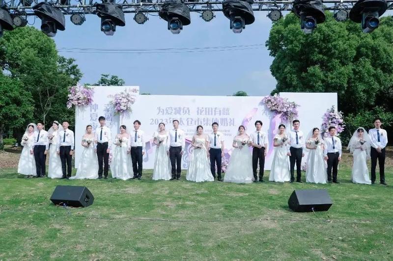 5月21日,太倉市文明辦、民政局、璜涇鎮在璜涇鎮幸福花海吳家灣共同舉辦“為愛減負花田有囍”集體婚禮。10對新人來自企業、學校、村(社區)等多個領域,用簡約、文明、浪漫的方式度過了人生中最重要的時刻。