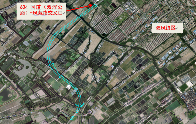 (一)目前634國道太倉段僅鳳苑路至昆山交界段尚未建成通車。本工程的實(shí)施是為了打通斷頭路,加快嘉昆太一體化發(fā)展,將進(jìn)一步促進(jìn)太倉與昆山的經(jīng)濟(jì)和交通聯(lián)系。本工程擬建道路東起于太倉雙鳳鎮(zhèn)鳳苑路交叉口,向西跨越吳塘河,延伸至昆山交界處,接昆山周市鎮(zhèn)規(guī)劃634國道,路線全長3.42km。具體位置如下圖所示: