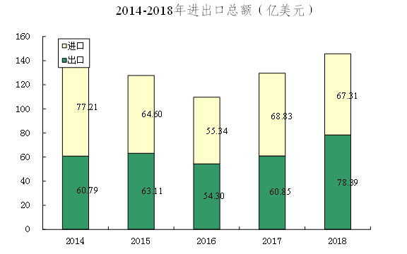 全年實現進出口總額145.70億美元,比上年增長12.3%,其中出口總額67.31億美元,增長10.6%;進口總額78.39億美元,增長13.9%。