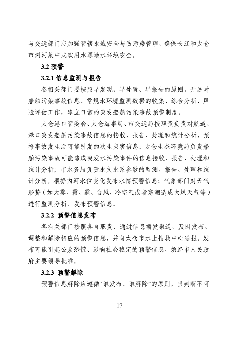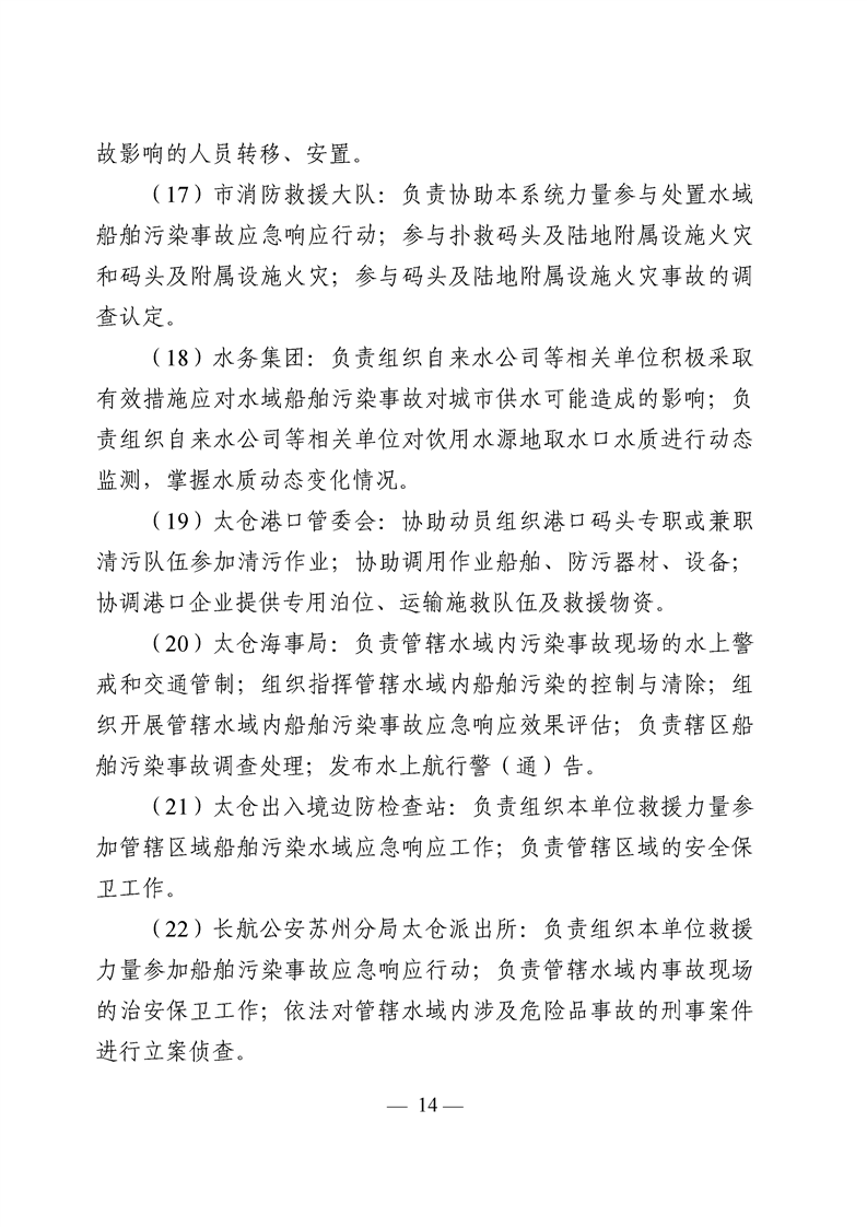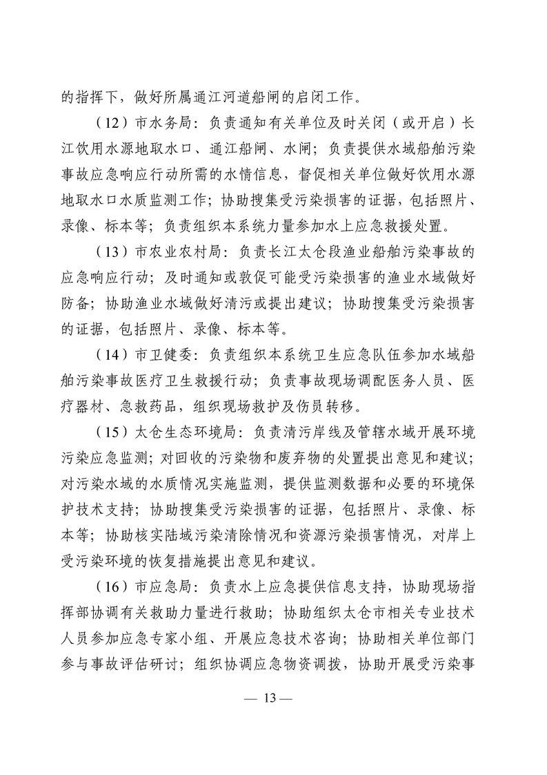 市政府辦公室關于印發《長江太倉段船舶污染事故應急處置預案》的通知