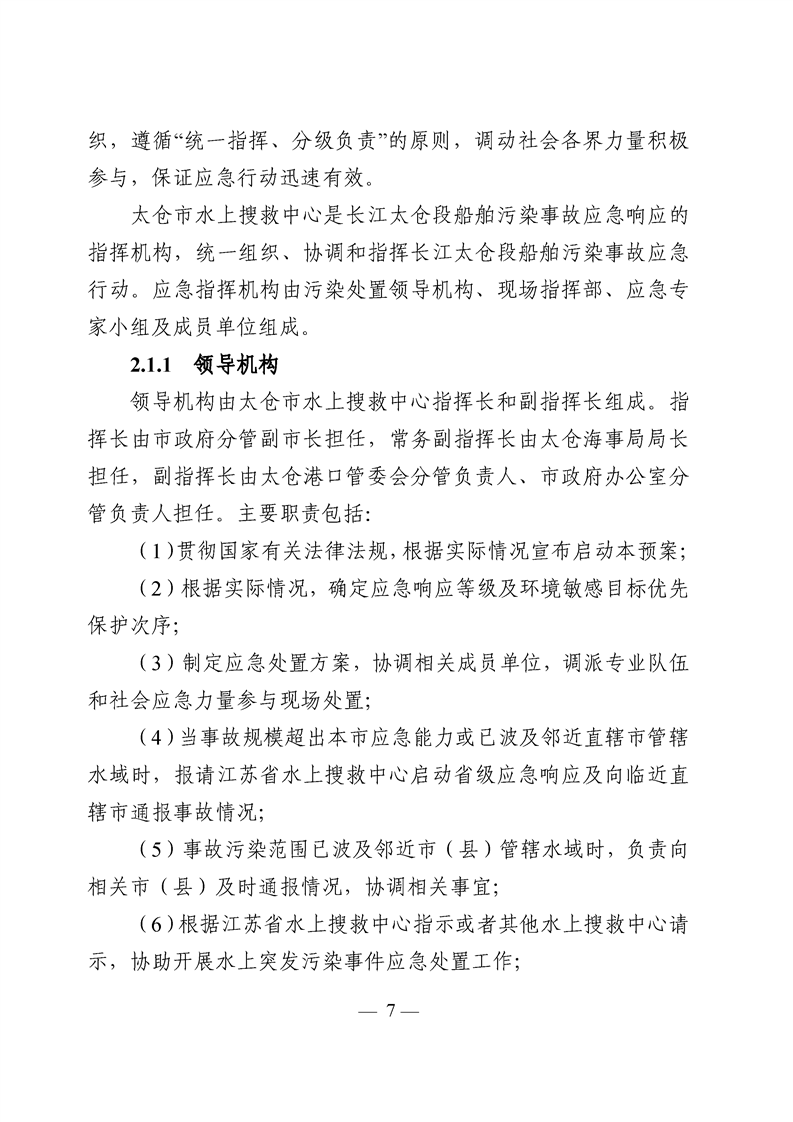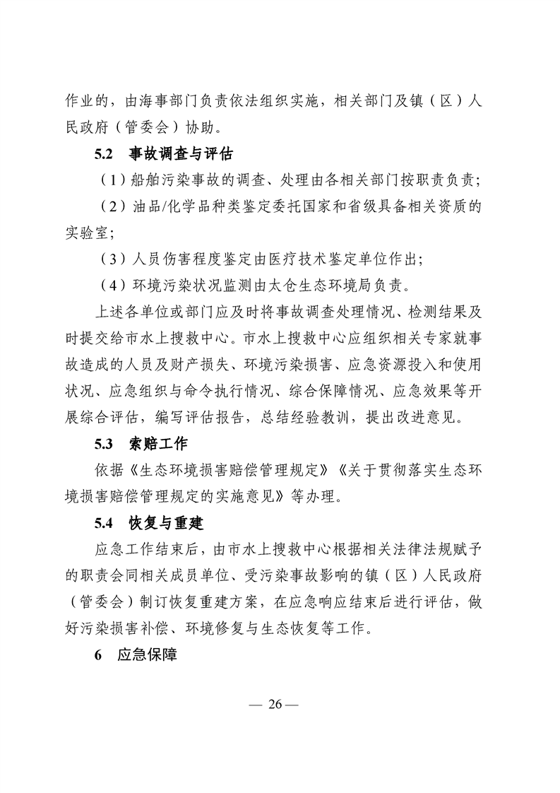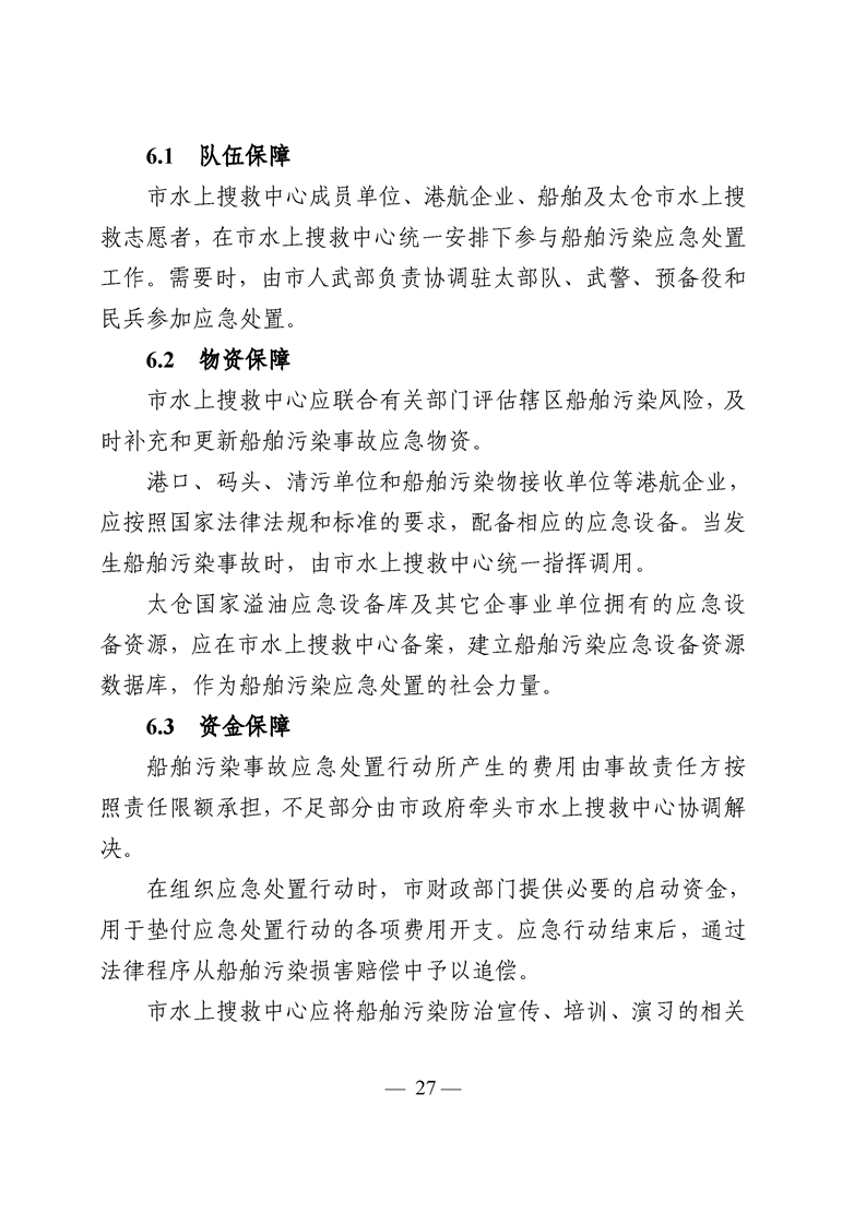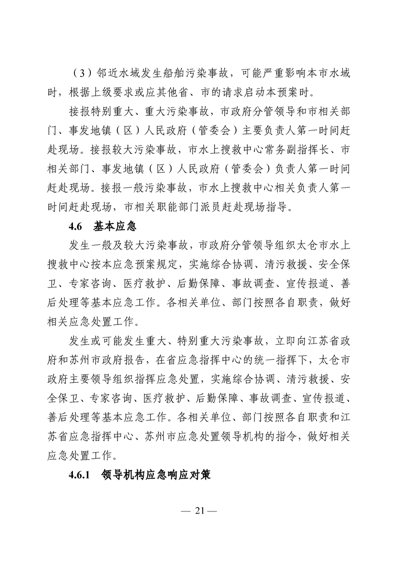 市政府辦公室關于印發《長江太倉段船舶污染事故應急處置預案》的通知